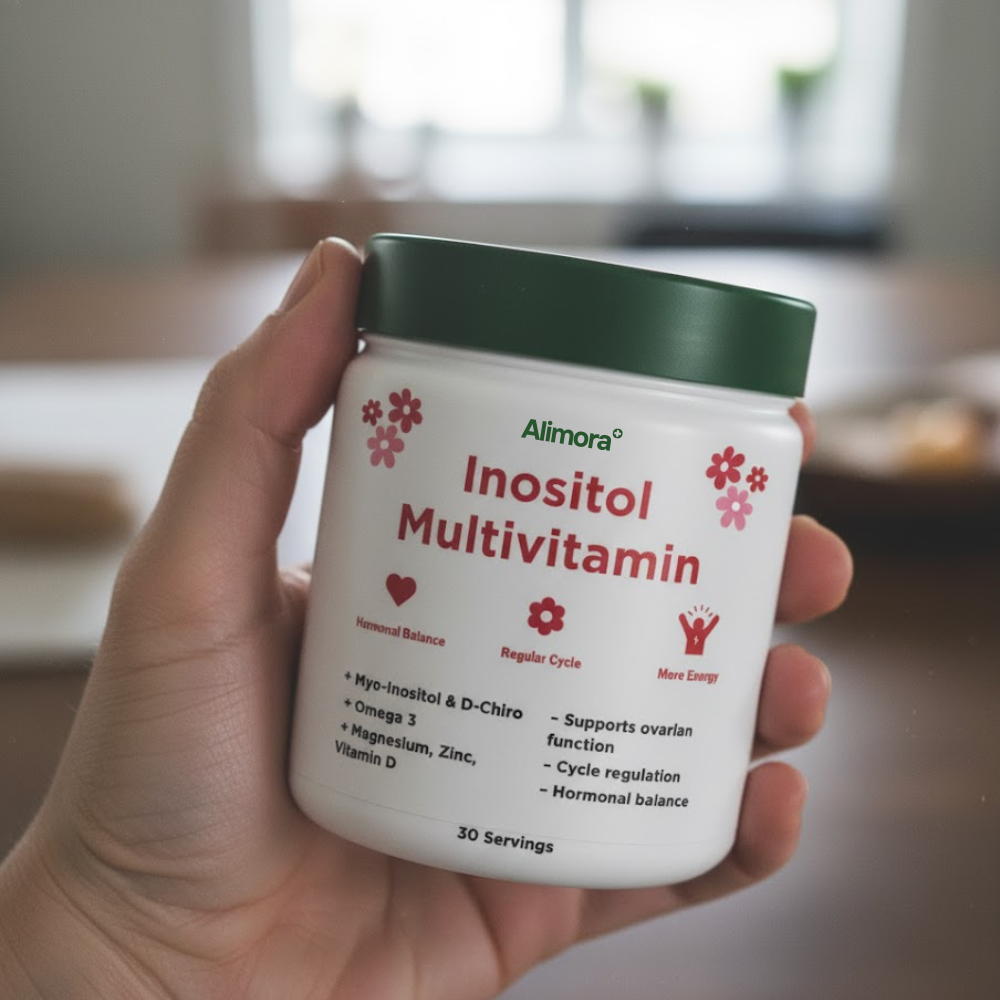 Alimora Inositol Multivitamin unterstützt dieses natürliche Gleichgewicht sanft mit Myo-Inositol, D-Chiro, Omega 3, Magnesium, Zink und Vitamin D.